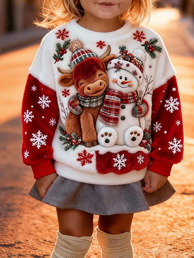 ❤️Buy 3 Get 12% OFF❤️Cute Animal Print Sweatshirt For Kids - Highland Cow And Snowman