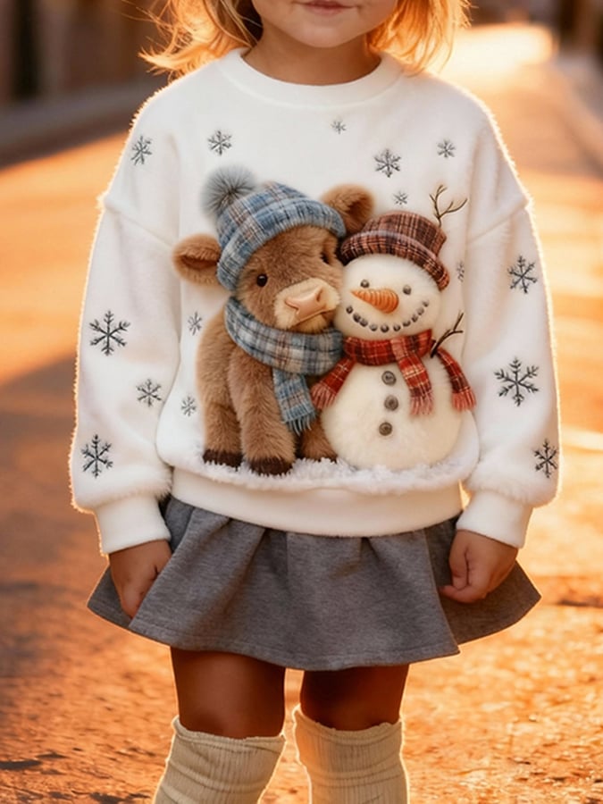 ❤️Buy 3 Get 12% OFF❤️Cute Animal Print Sweatshirt For Kids - Highland Cow And Snowman