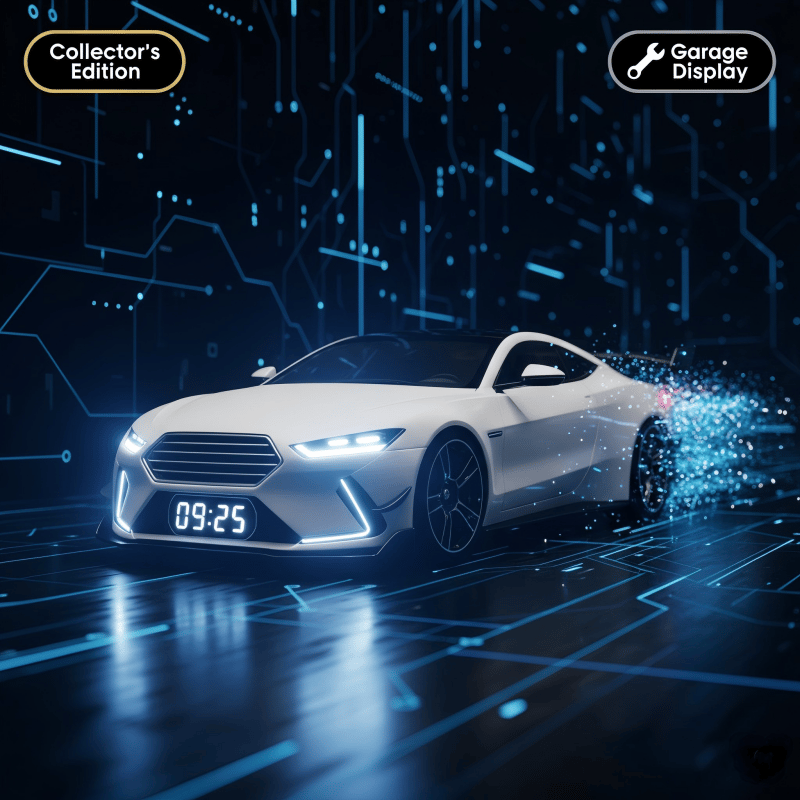 - Integrated digital time display, subtly blended into the front bumper. Stylish and practical.