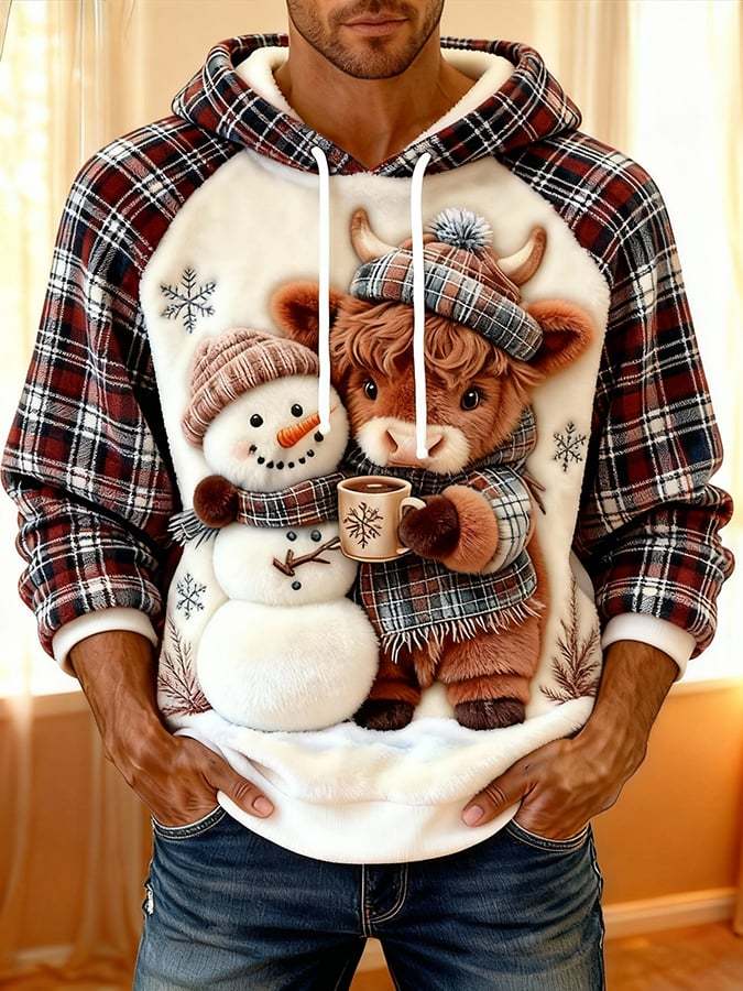 ❤️Buy 3 Get 12% OFF❤️Men'S Highland Denim Print Flannel Raglan Sleeve Hooded Top