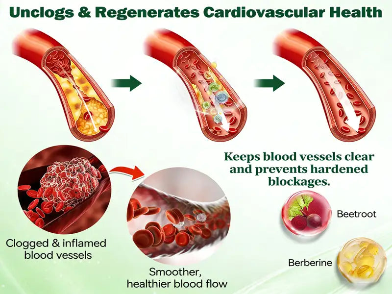 Resveratrol enhances the activation of SIRT1 and promotes nitric oxide production in vascular endothelial cells, thereby improving vasodilation. Berberine, Coenzyme Q10, and citrus polyphenols act synergistically on inflammatory and lipid-metabolism pathways to promote fat metabolism and reduce visceral fat accumulation. This multi-pathway synergy helps maintain more youthful and elastic blood vessels, optimizes hemodynamics, balances lipid profiles, and strengthens overall cardiovascular resilience.