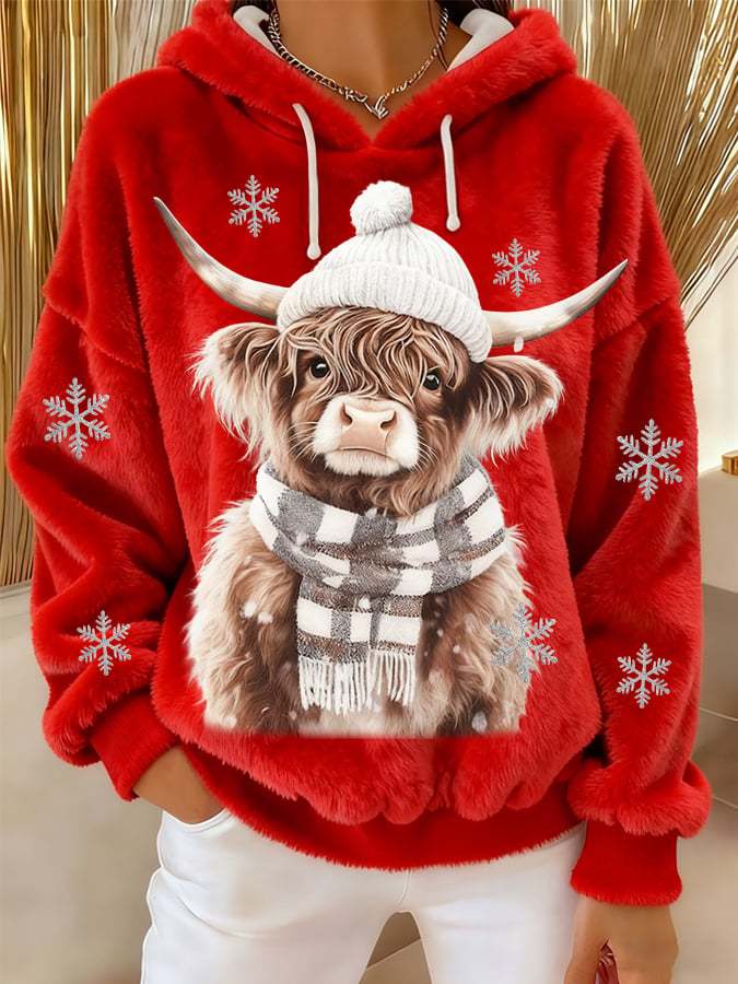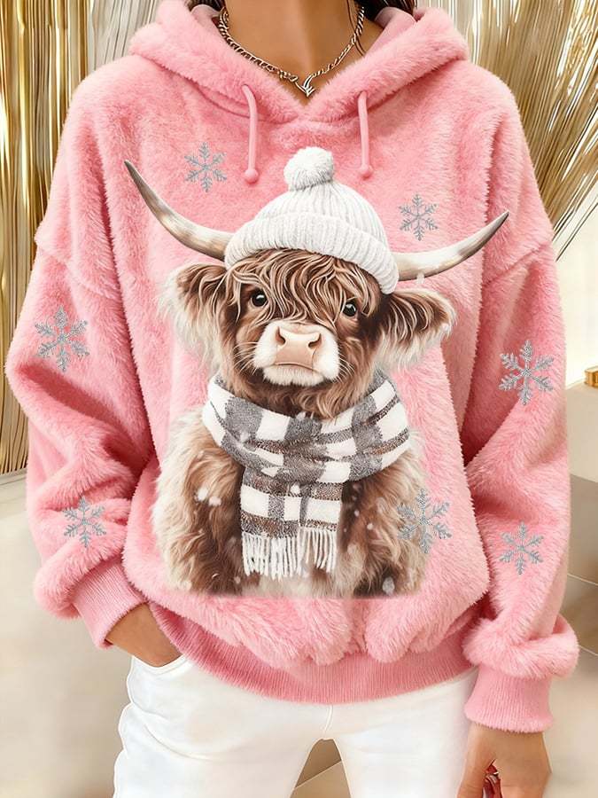 ❤️Buy 3 Get 12% OFF❤️Women's Animal Highland Cow Art Print Plush Warm Sweatshirt