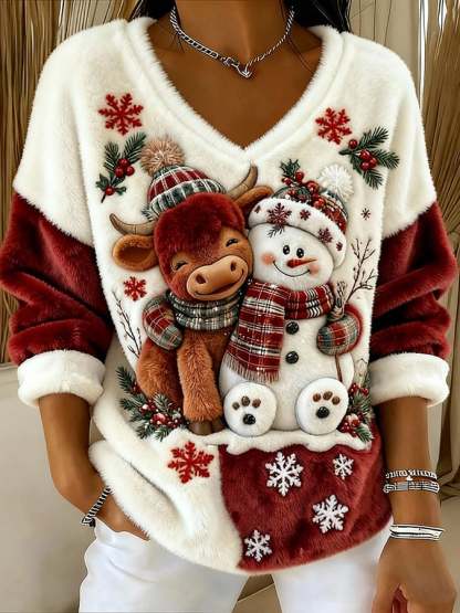 Women's Animal Highland Cow Faith Print V-Neck Top