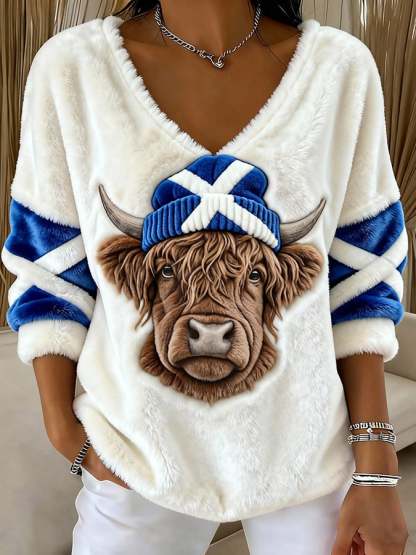 ❤️Buy 3 Get 12% OFF❤️Women's Animal Highland Cow Print V-Neck Top