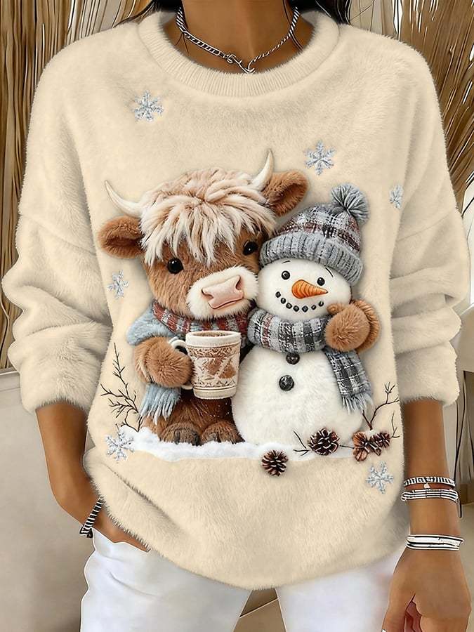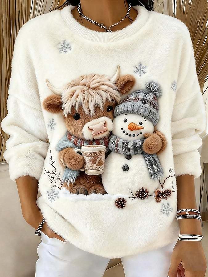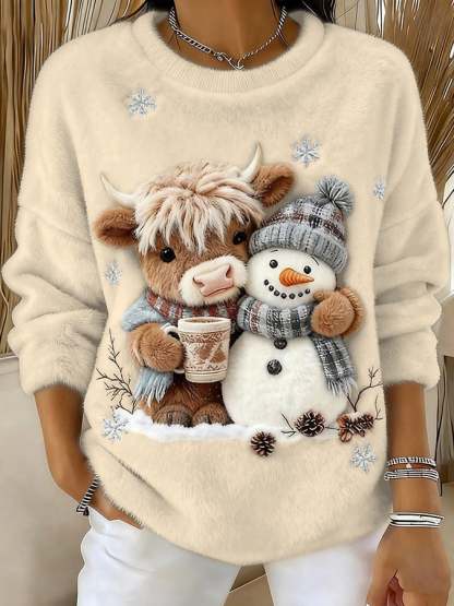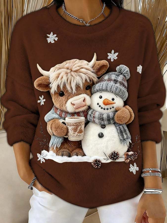 🔥Last Day 49% OFF🔥Women's Animal Highland Cow Yeti Art Print Crew Neck Top