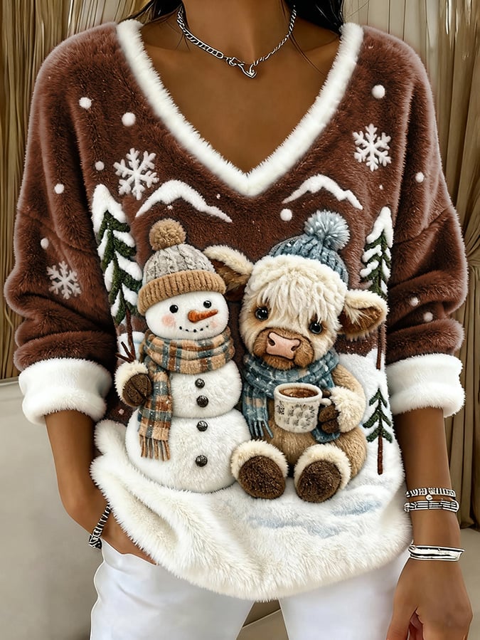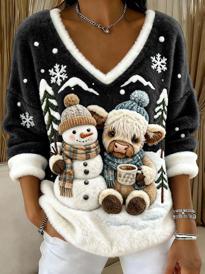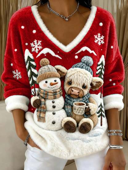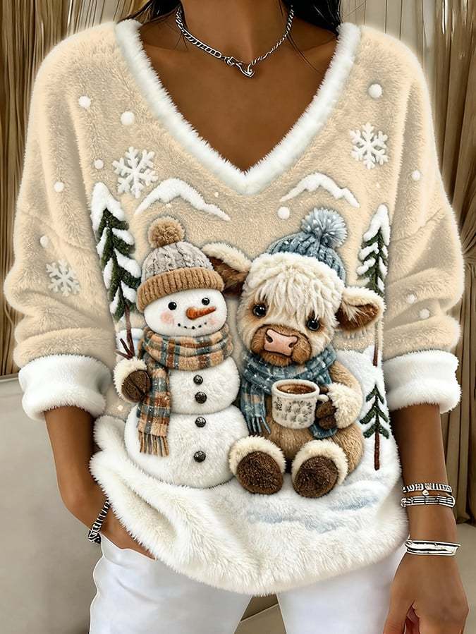 🔥Last Day 49% OFF🔥Women's Animal Highland Cow Yeti Art Print V-Neck Top