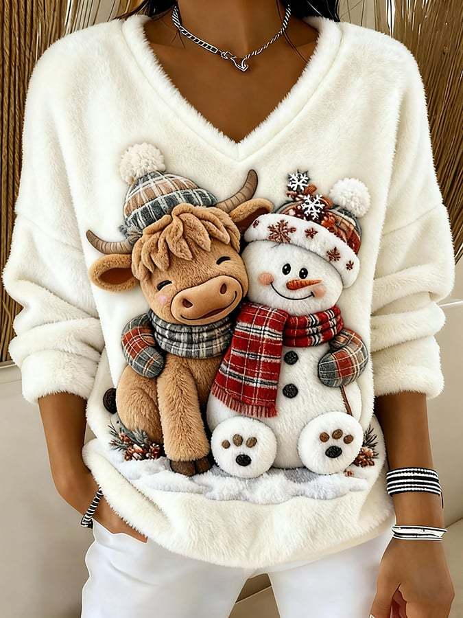 ❤️Buy 3 Get 12% OFF❤️Women's Animal Highland Cow Yeti Art Print V-Neck Top