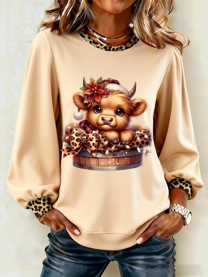 ❤️Buy 3 Get 12% OFF❤️Women's Casual Highland Leopard Print Puff Sleeve Sweatshirt