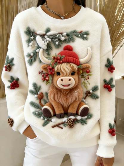 Women's Christmas Highland Denim Print Sweatshirt
