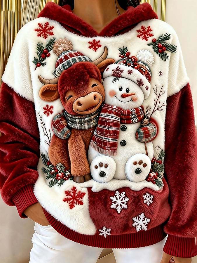 ❤️Buy 3 Get 12% OFF❤️Women's Highland Cow Snowman Flannel Hooded Sweatshirt