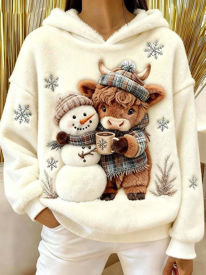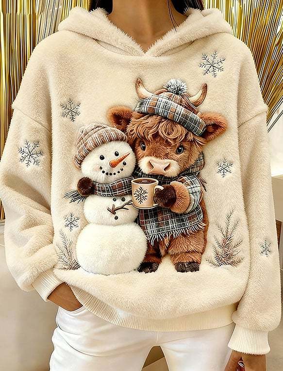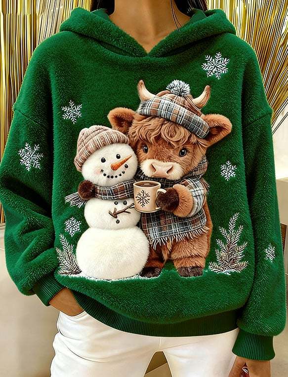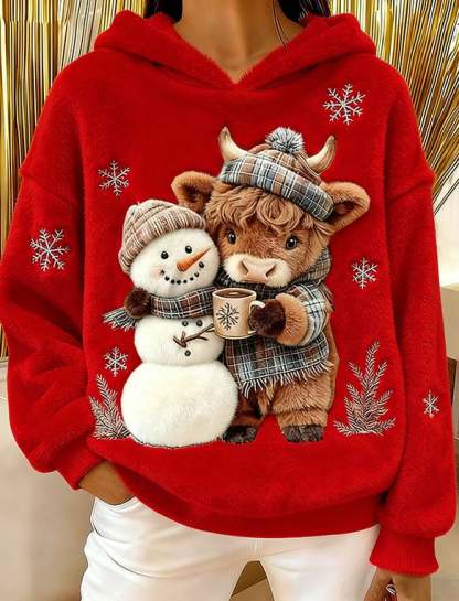 ❤️Buy 3 Get 12% OFF❤️Women's Highland Cow Snowman Flannel Hooded Sweatshirt
